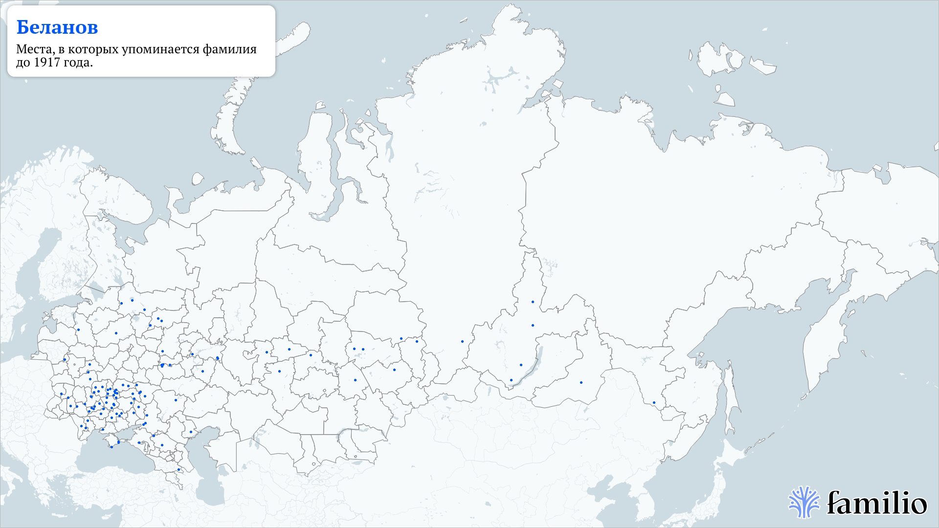 По историческим документам фамилия Беланов встречается на территории современных Сумской области, Крыма, Полтавской области, Черкасской области, Воронежской области, Днепропетровской области и Иркутской области.